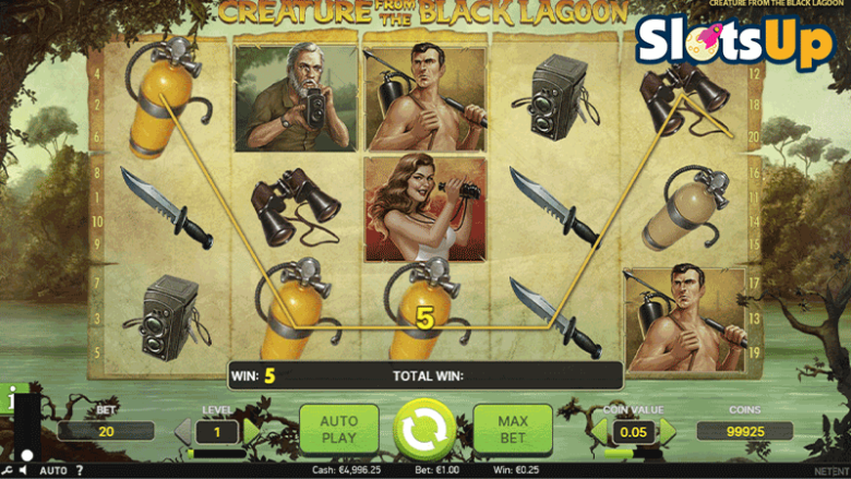 The Creature From the Black Lagoon by NetEnt is placed on 5 reels, 3 rows, and has 20 fixed paylines.