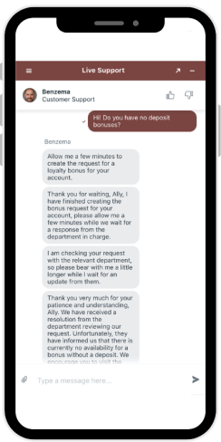 O website do casino Abu King afirma que o Chat ao Vivo está disponível 24 horas por dia, 7 dias por semana, e eu testei-o em diferentes alturas - recebi sempre uma resposta imediata. Os agentes responderam sempre em pormenor e fizeram o seu melhor para ajudar em tudo.