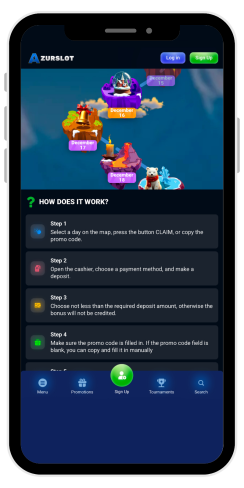 Este é um programa que permite aos jogadores receberem promoções adicionais do casino AzurSlot todos os dias. Estas podem incluir Rodadas Grátis ou bónus extra. Pelo que vi, um jogador pode receber 35 FS no Elvis Frog TRUEWAYS, um bónus de 90% até 199 €, um bónus de 50% até 250 €, e assim por diante. O mapa de bónus é atualizado uma vez por mês e os jogadores têm 1 dia para utilizar cada bónus. O requisito de aposta para bónus em dinheiro e rodadas grátis é de 40x. Considero isto uma excelente adição a todos os programas do casino e mais um sistema bem concebido para os jogadores regulares.