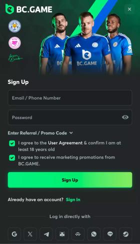 Pode registar-se de duas formas - com o seu e-mail/telemóvel ou iniciando sessão com o Google, X (Twitter), Twitter, WhatsApp, Steam ou a sua carteira de criptomoedas.